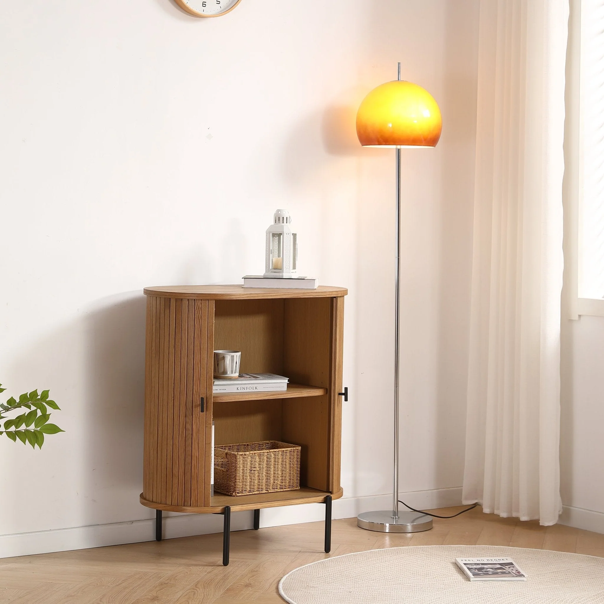 Säilytyskaapissa on käytännölliset jalousie-ovet, jotka paitsi lisäävät tyylikkyyttä, myös helpottavat kaapin avaamista ja sulkemista viemättä ylimääräistä tilaa. Hieno käsityötaito ja vaalea tammipuu korostavat luonnollisia puukuvioita, mikä tekee kaapista huomiota herättävän huonekalun niin olohuoneisiin, makuuhuoneisiin kuin eteisiinkin