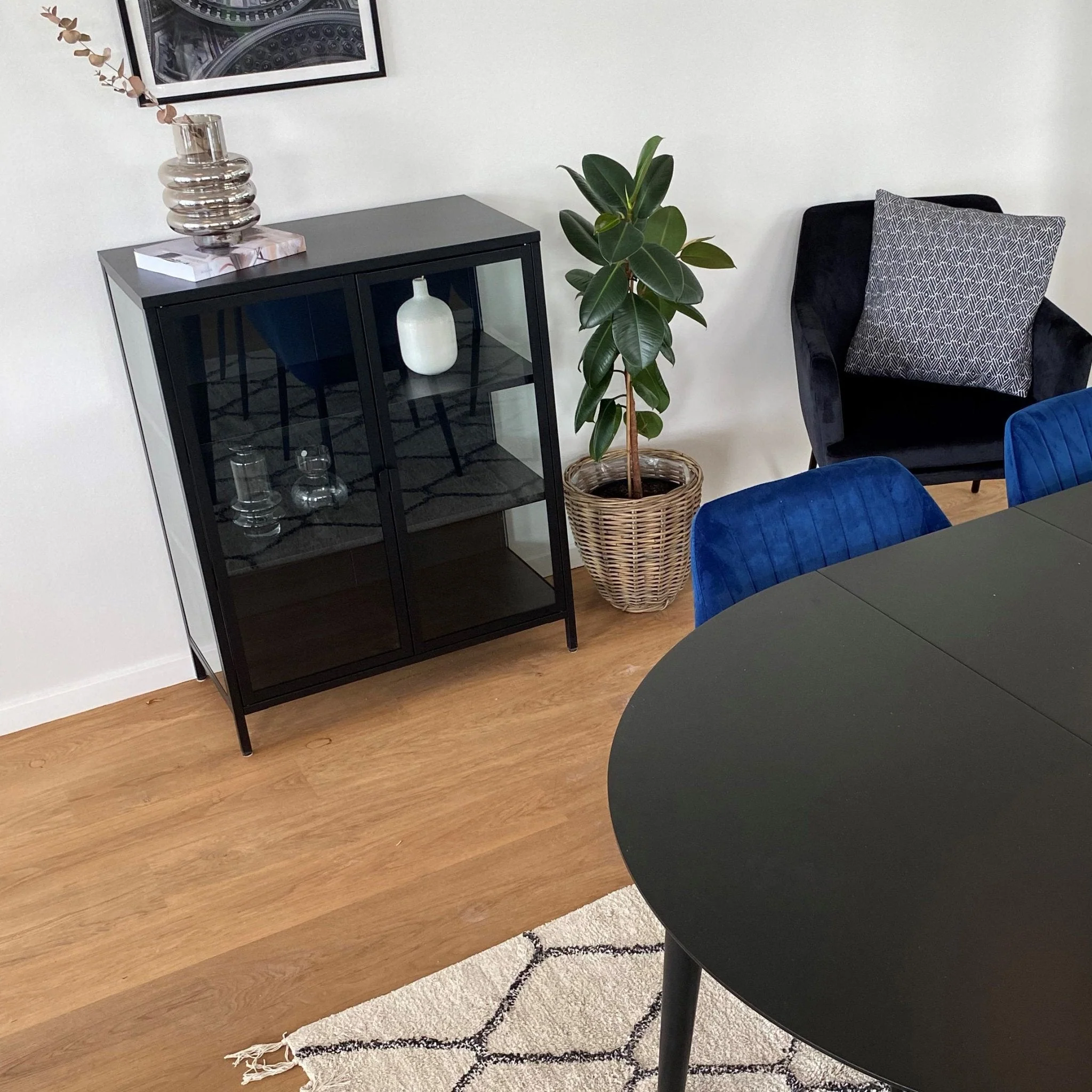 Sisustuskaapit ovat sisustuksessa tällä hetkellä muotia. Se on trendi, joka ei taatusti mene pois muodista lähiaikoina, joten voit hypätä kelkkaan huoletta. Voit tehdä sen helposti tämän Herman-kaapin avulla, joka on ehdoton myyntimenestyksemme koko vitriinivalikoimastamme. Tässä kaapissa on raakaa ja teollista tyyliä, mutta myös minimalistista muotoilua. Musta metalli voi luoda uskomattoman kontrastin riippumatta siitä, miten asut - olipa kyse sitten asunnosta, jossa on stukkokatto, vanhasta muurarihuvilasta tai virtaviivaisesta uudisrakennuksesta. Herman sopii useimpiin koteihin ja tuo sisustukseen raa'an mutta tyylikkään lisän.