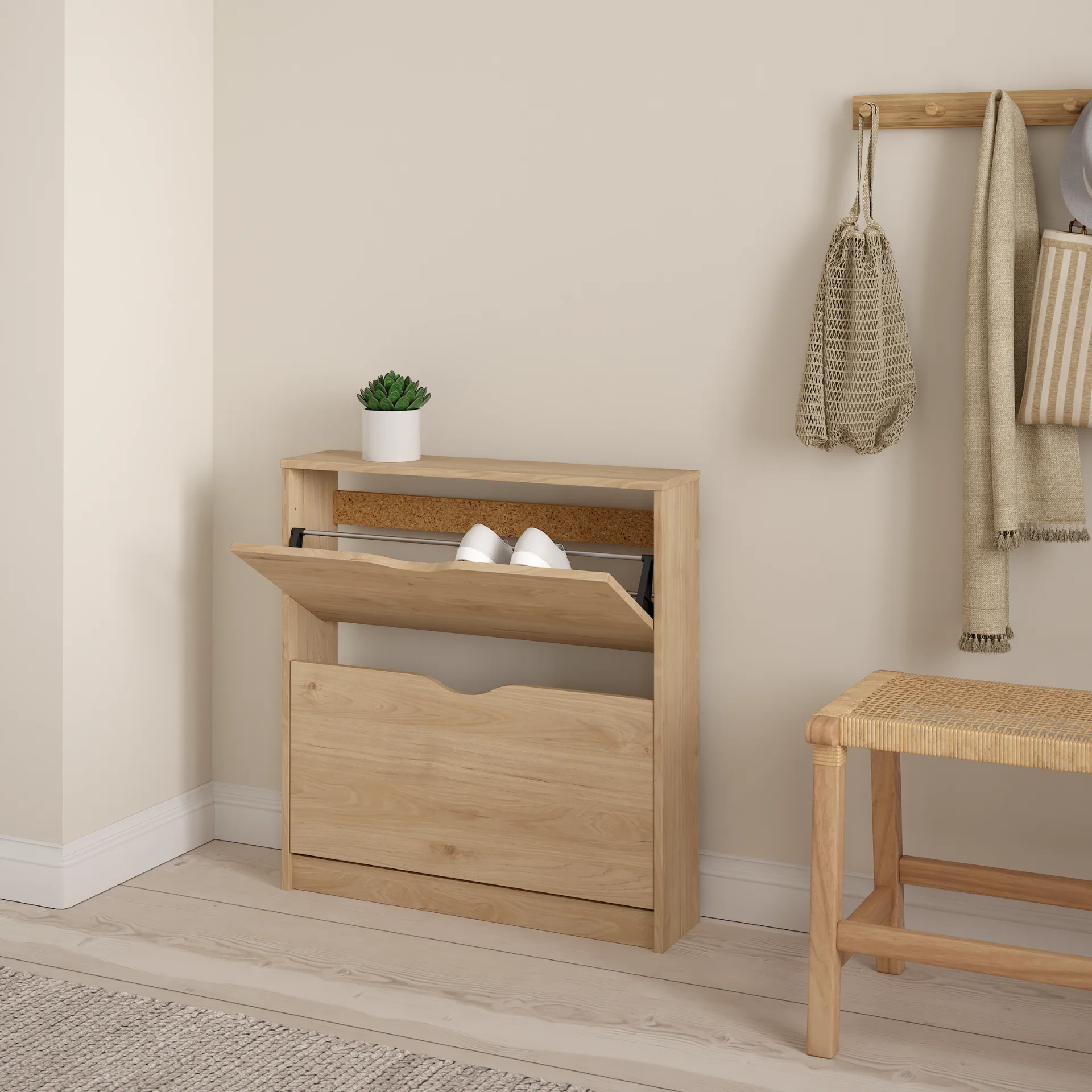 Kenkäkaappi takaa kahdella lokerolla, että kenkäsi pysyvät järjestyksessä ja helposti saatavilla. Modernissa ja yksinkertaisessa muotoilussa yhdistyvät sekä toiminnallisuus että ulkonäkö, joten se on täydellinen valinta mihin tahansa eteiseen, käytävään tai vaatehuoneeseen