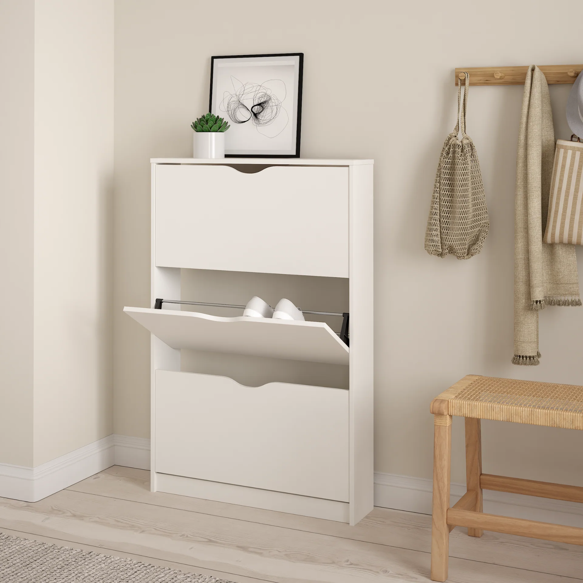 Kenkäkaappi takaa kolmella tilavalla säilytyslokerolla, että kenkäsi pysyvät järjestyksessä ja helposti saatavilla. Modernissa ja yksinkertaisessa muotoilussa yhdistyvät sekä toiminnallisuus että ulkonäkö, joten se on täydellinen valinta mihin tahansa eteiseen, käytävään tai vaatehuoneeseen