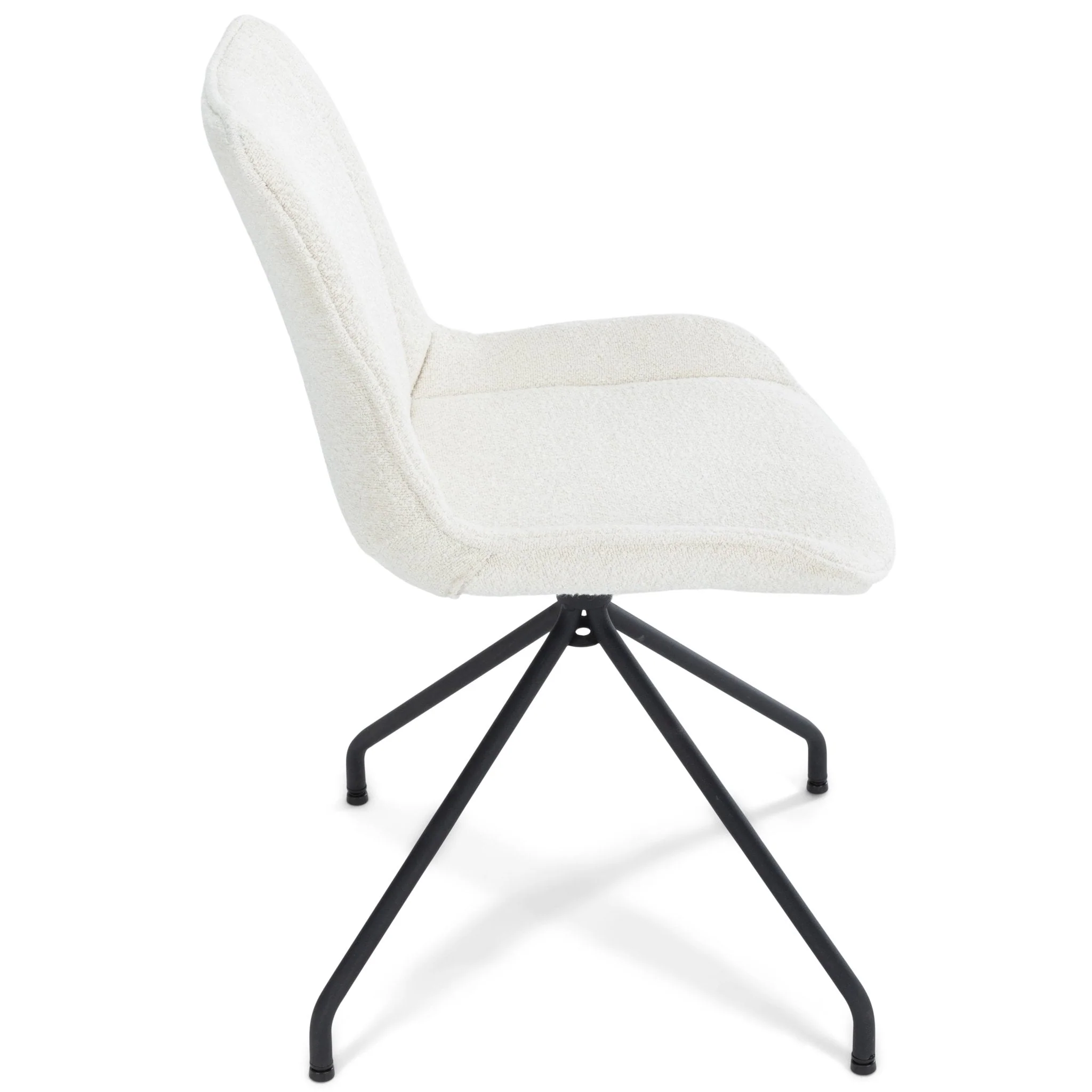 Maja ruokapöytätuoli valkoista bouclea, jossa on 360 asteen kääntötoiminto